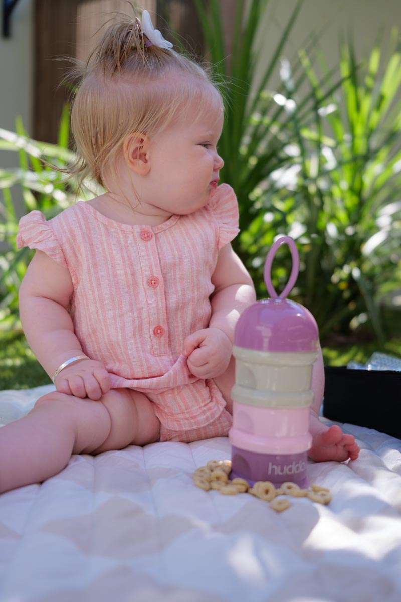 Introducing the HuddoCo Snack Stack – The ultimate multitasking stackable container. It combines a formula dispenser and snack container in one, streamlining your little one’s essentials. Compact and travel-friendly, our Snack Stack is designed to fit seamlessly into your baby bag or handbag, making it the perfect companion for parents on the move.