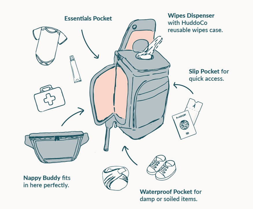 Our favourite compartment? Hard to choose between the quick access wipes dispenser, waterproof pocket or the side pocket, which is the perfect home for your Nappy Buddy (think quick and easy changes on the go).