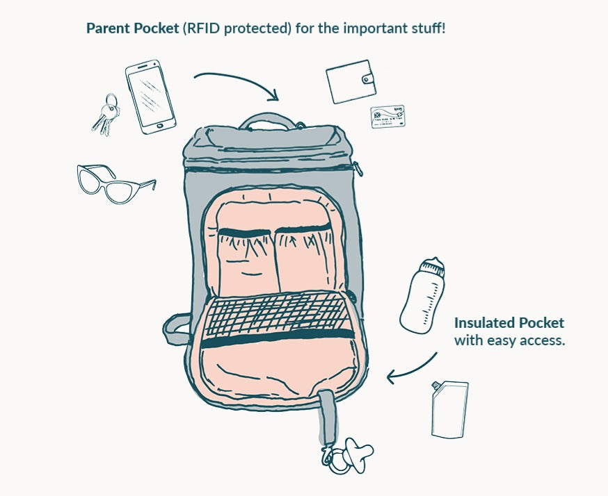A spot for everyone’s entertainment. The tech pocket fits a 15” laptop and has additional pockets so you can carry multiple devices. Parenting is thirsty work, don’t worry, our water bottle holders can fit your XL water bottles.