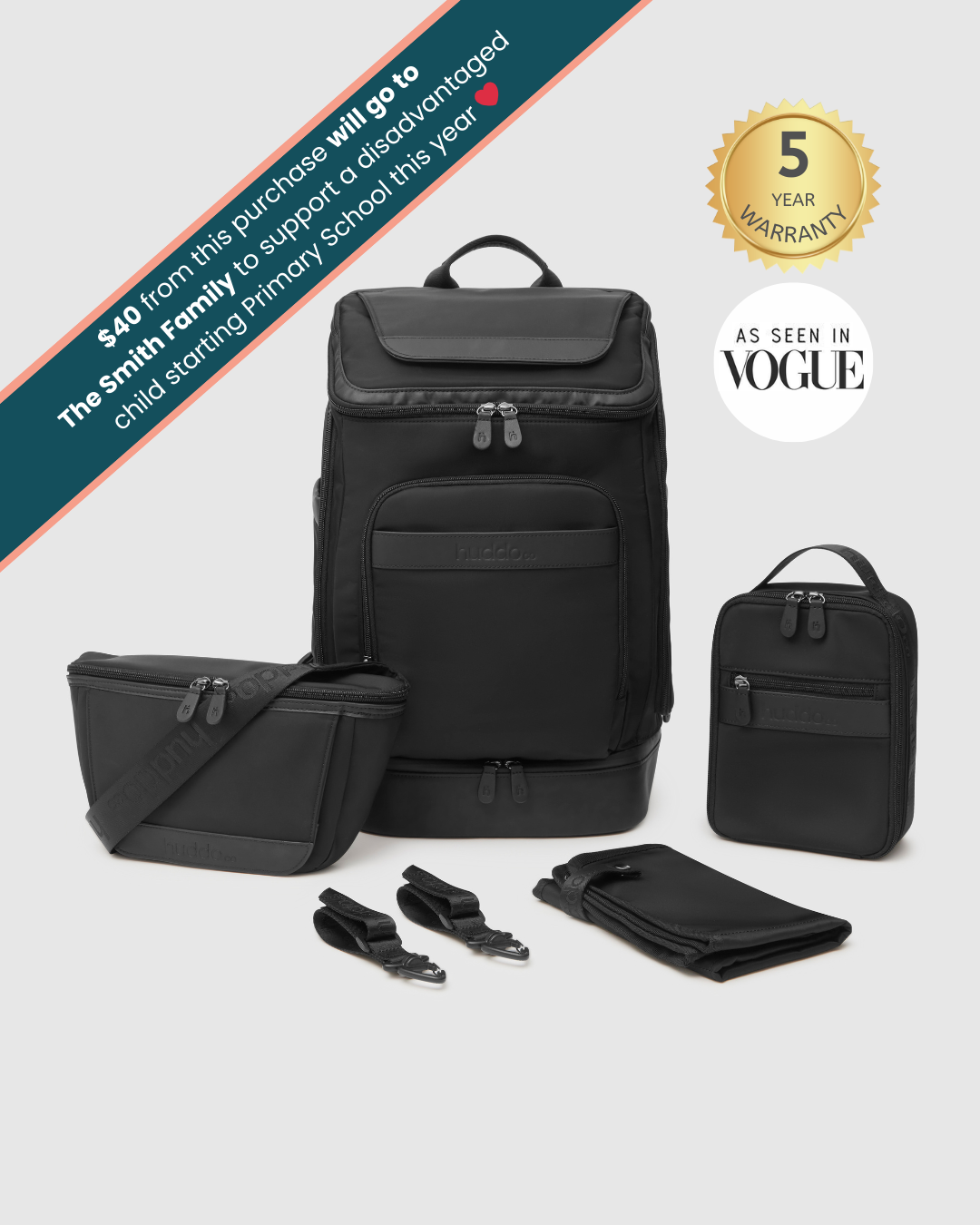 Our favourite compartment? Hard to choose between the quick access wipes dispenser, waterproof pocket or the side pocket, which is the perfect home for your Nappy Buddy (think quick and easy changes on the go).